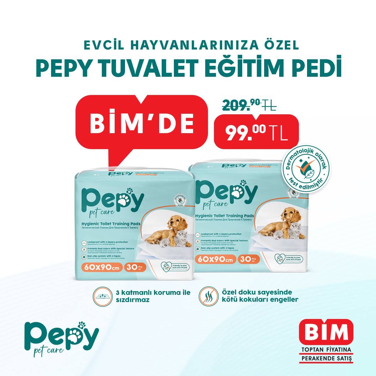 Pepy Evcil Hayvanlarınıza Özel Kedi Köpek Tuvalet Eğitim Pedi Gaziantep ve Kilis Bim Mağazalarında...